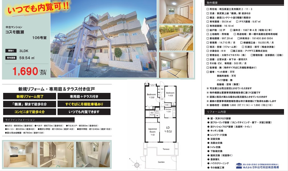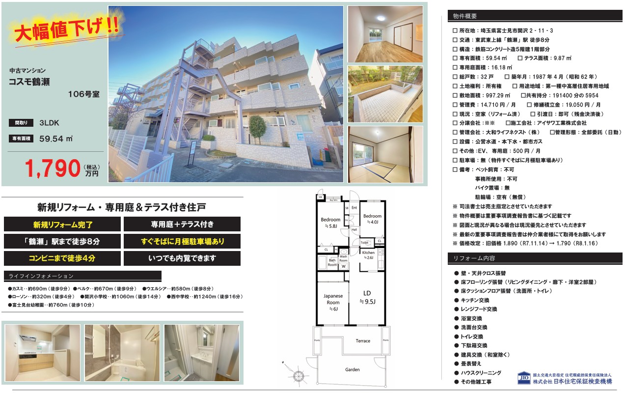 【1/17 大幅値下げ♪】⭐コスモ鶴瀬⭐