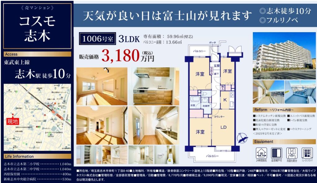 【9/6 大幅値下げ♪】コスモ志木◆フルリノベマンション◆