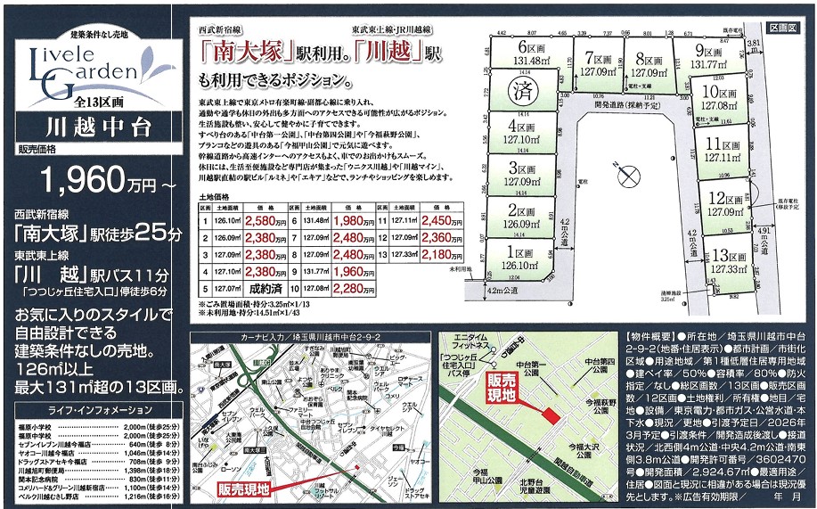 【1/26 更新!】川越中台~建築条件付売地~☆現地販売会開催中☆