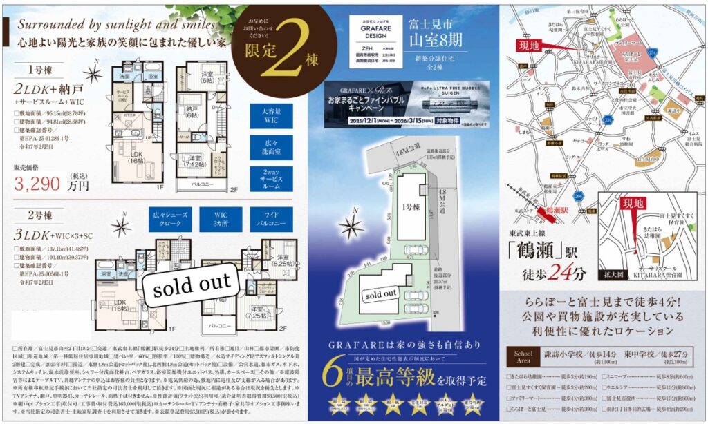 【3/19 大幅値下げ♪】富士見市山室8期 全2棟